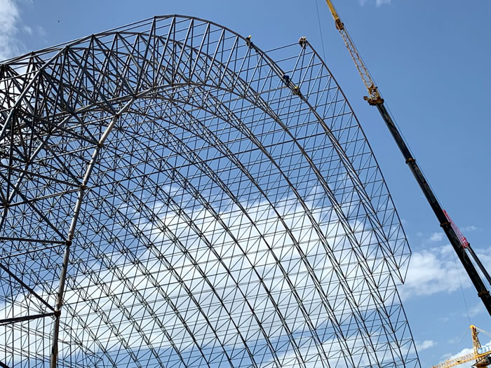 (2)网架加工前应对现场尺寸进行复测,确认无误后方可进行加工、安装;网架制作、运输、安装应遵守《空间网格结构技术规程》JGJ7-2010、《钢网架海门螺栓球节点》JG/T 10-2009、《钢网架海门螺栓球节点用高强度螺栓》 GB/T 16939-2016、《海门钢结构海门工程海门施工规范》 GB50755-2012、《海门钢结构海门工程施工质量验收标准》 GB50205-2020。